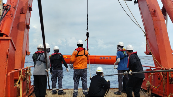 北京时间2024年10月16日10时,在西太平洋上执行大洋87航次的“大洋一号”船上,随着折臂吊车的摆动与升降,“洞察”系列2号机被稳稳地落在甲板上,现场顿时响起一片掌声。这一激动人心的时刻标志着“洞察”系列2号机圆满完成了在西太平洋北京先驱多金属结核矿区的海上试验及首次西太应用任务。