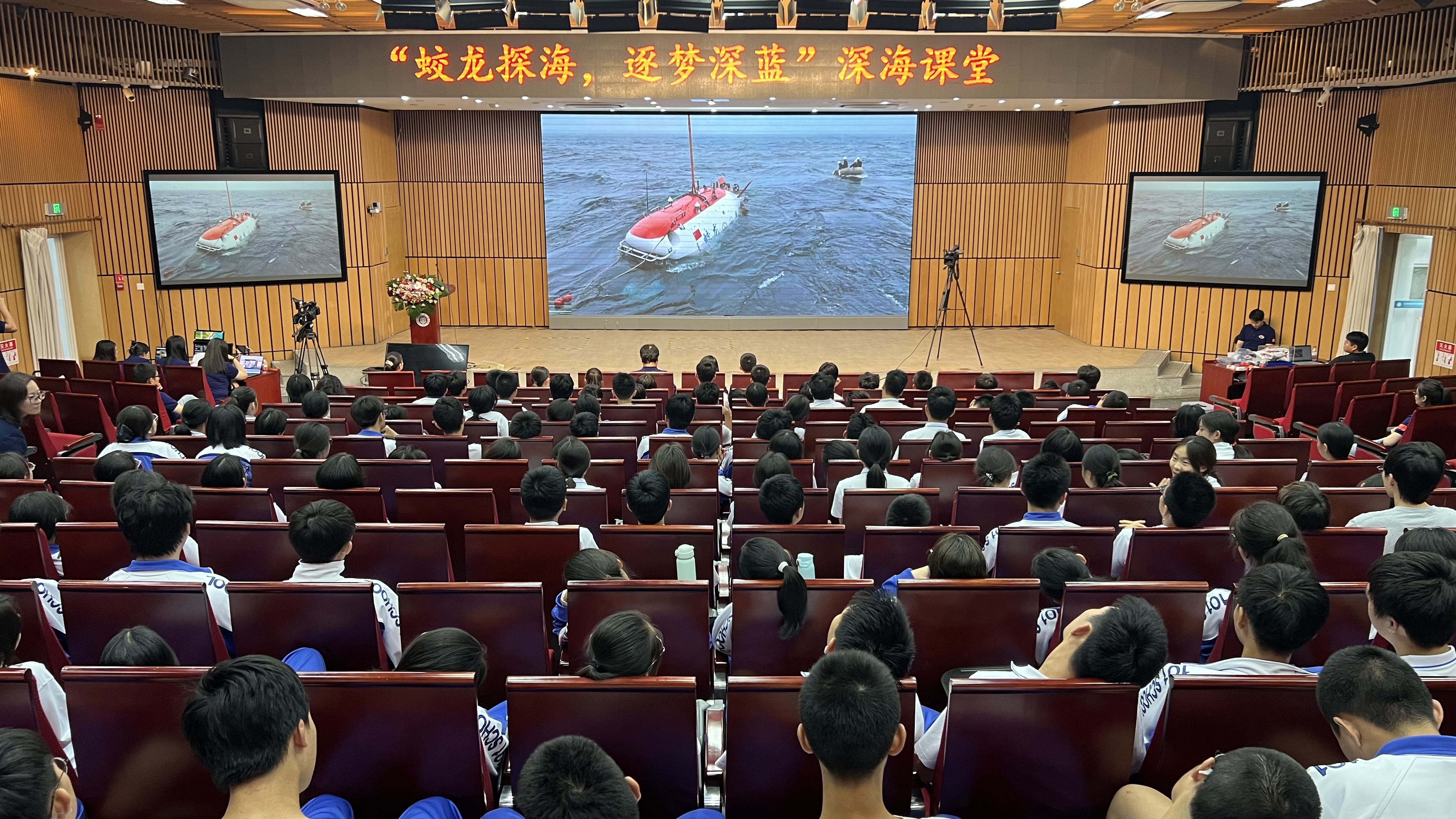 活动现场,国家深海基地管理中心研究员孙永福,聚焦深海资源和深海科技,为师生们揭开“深蓝之谜”。同时,播放了《蛟龙勇闯大洋》《深海先锋:揭秘中国“蛟龙”号载人潜水器》《蛟龙·深蓝新纪元》等科普视频,系统介绍了我国“蛟龙”号载人潜水器的研制历程、技术升级成果以及在全球大洋的科学考察进展和航次现场情况。