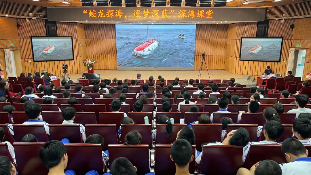 9月5日,由中国大洋事务管理局、国家深海基地管理中心、香港科技大学联合主办的“蛟龙探海,逐梦深蓝”深海课堂——中国大洋92航次一船三地科普活动举办。来自北京一零一中学、香港仁济医院第二中学、青岛蓝谷中学、青岛市即墨区蓝谷实验中学等十余所中小学共700余名师生参与了活动。