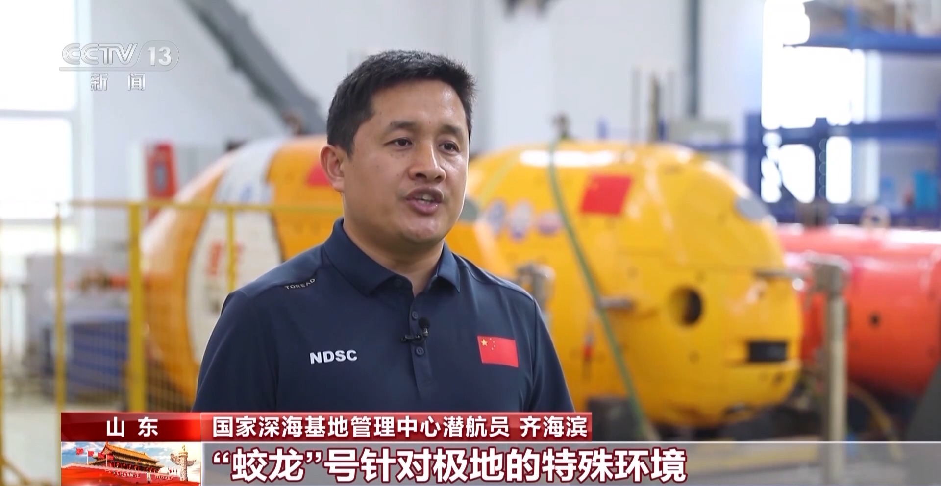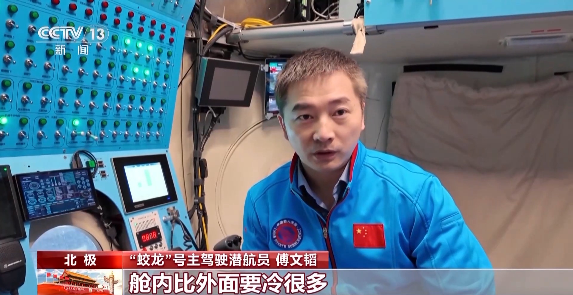 “蛟龙”号主驾驶潜航员傅文韬:我们在别的地方下潜的话,舱内比外面的话要冷很多,但是北极不一样,我们进来的时候穿多少,到底下也是穿多少。也是会做很多准备工作,把每个潜次的任务完成好。
