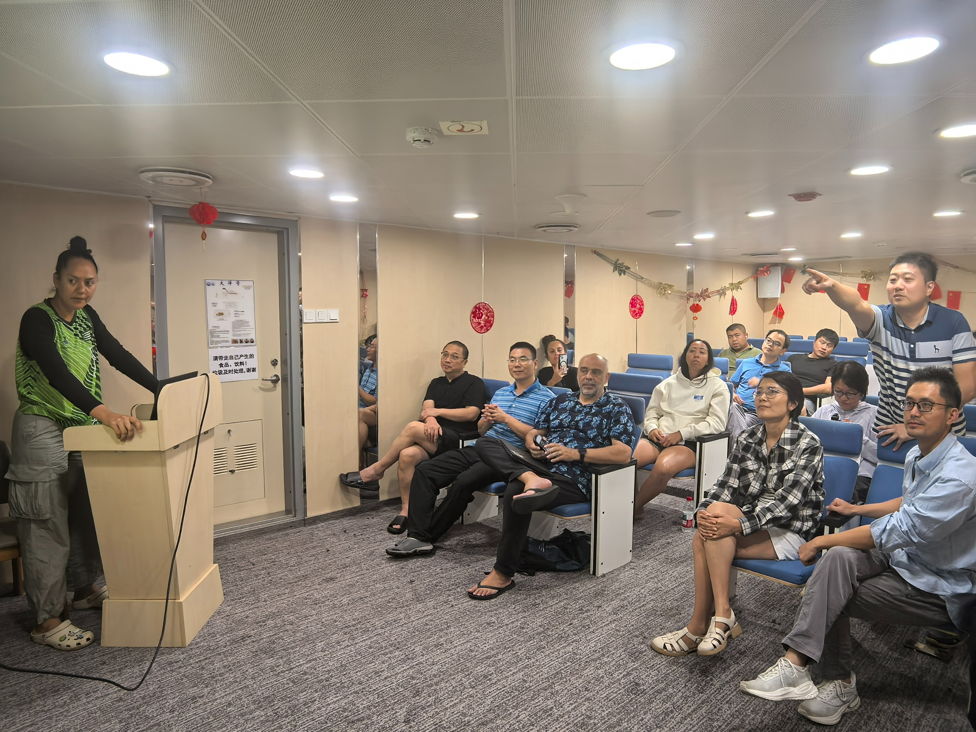 航次期间,中方科考队为库方参航队员进行了深海资源调查技术和理论培训,并开展学术交流活动,以“理论+实操”双维度搭建系统培训体系,针对船载设备的原理、深海设备的操作技巧以及结核结壳、沉积物样品的实验室处理流程开展“手把手”教学与“点对点”答疑。双方科研人员围绕东太平洋相关区域地质、底栖生物类型及特征和区域环境管理政策等内容进行了学术交流,增进了双方对该区域海底地质和海洋环境的认识及理解。双方还开展了乒乓球友谊赛等文娱活动,增进双方文化交流。